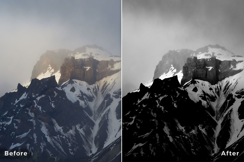 3 universal black and white looks complete this collection of Capture One Styles for landscape photography: Achieve appealing black and white images with deep, rich blacks and high contrast in just a few clicks.