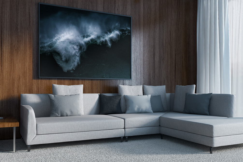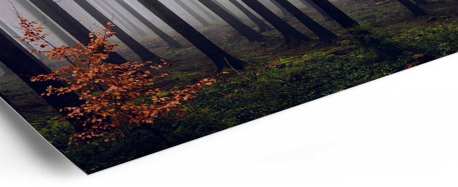 Without glazing, a photo print on Aluminium Dibond has a very purist and timeless look. Aluminium Dibond is a 3 mm thick composite material with three layers. Two white coated aluminium plates enclose a polyethylene core in black colour, which can also be seen from the side. The material is extremely robust and at the same time light in weight, making it ideal for large-format parts. The high-quality photo print is laminated with a very thin film for protection and applied to the aluminium dibond without any bubbles.