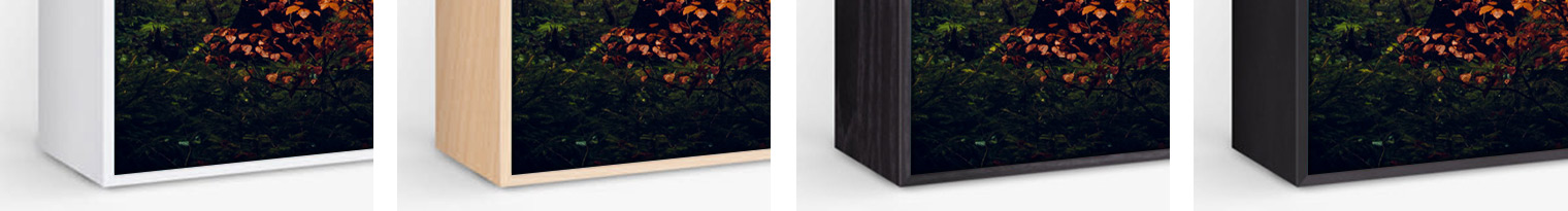 The wooden GalleryBox frames the photo subtly when viewed from the front, but reveals an impressive depth (35 mm) when viewed from the side. The solid wood gives the picture a natural look and you can choose from four different colors: White Maple, Natural Maple, Brown Alder or Black Oak: